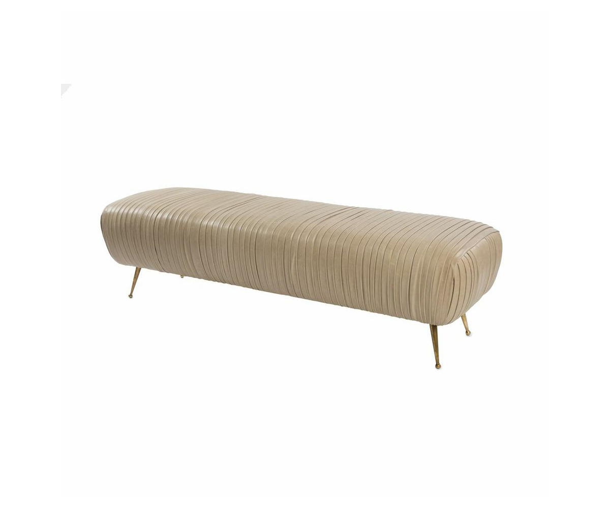 Souffle Bench的精致线条采用标志性皱折皮革细节设计。 全面的蔬菜染色小羊皮手工缝制在框架上。 这款精致细腻的豪华长凳坐落在坚固铸青铜的锥形腿上。 精致的比例非常适合入口通道,床尾或餐凳。