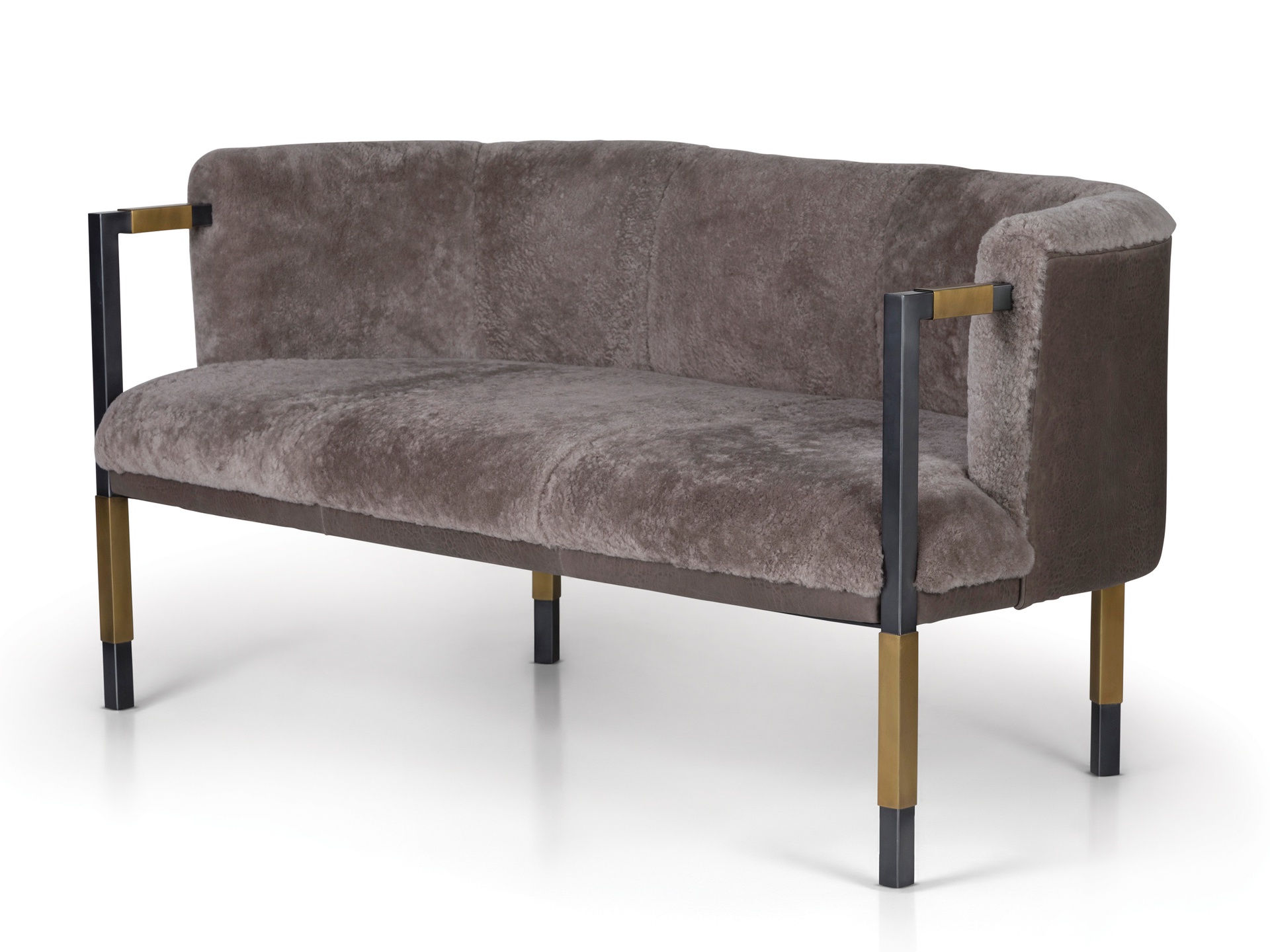 Larchmont Settee实现了形式和功能的无缝共存,从前现代主义建筑风格中汲取灵感,特别注重物质性和几何性。 这款双人长靠椅采用方形外形不锈钢框架,饰有Pewter Patina,和抛光黄铜套管细节。