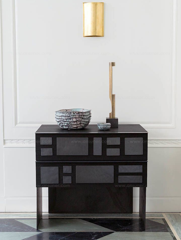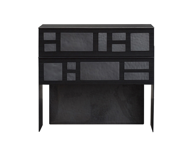 细腻的罗纹与Hyperion玄关柜的深层乌木饰面相结合,赋予这款柜子醒目的轮廓。 每块铸造黄铜都有手工锤打纹理和光泽的黑色饰面。 两个深抽屉在软关闭硬件上滑出。 这款柜子可以很容易地作为床头柜或配置在一个戏剧性的入口通道。