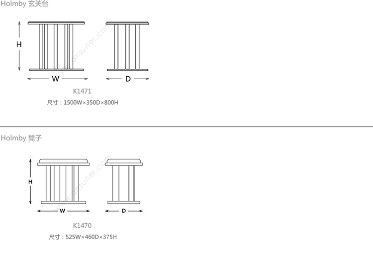 Holmby 玄关台 系列尺寸/示意图
