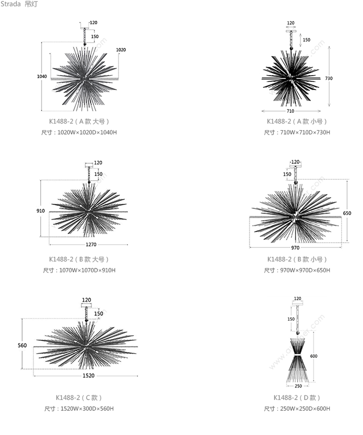 Strada 吊灯 系列尺寸/示意图