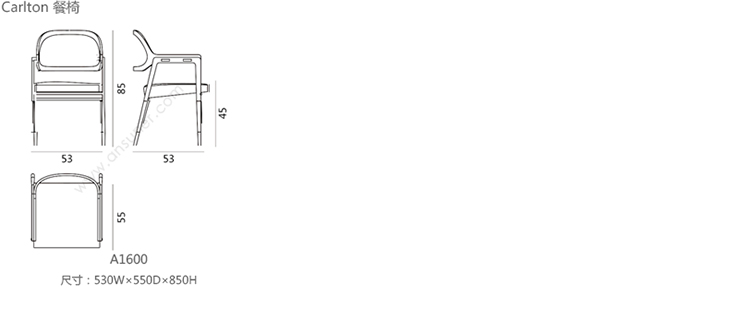 Carlton 餐椅 系列尺寸/示意图