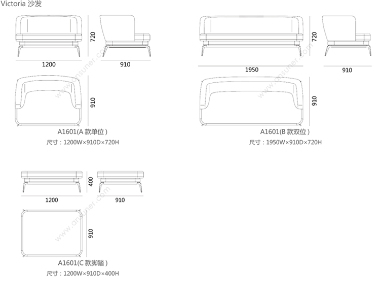 Victoria 沙发 系列尺寸/示意图