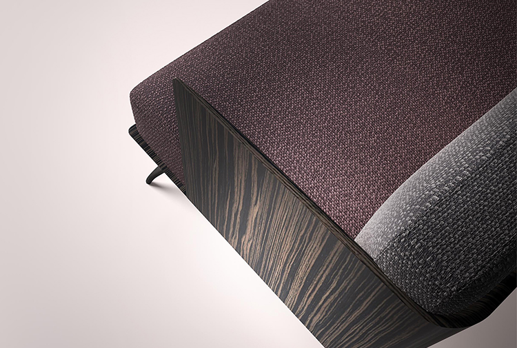与深灰色靠背相对的勃艮第面料座椅完全符合其框架。锃亮的钢腿和这把漂亮的扶手椅非常相配。
