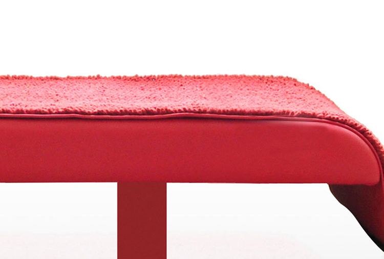 奇特的红色Tappeto Volante长椅采用哑光漆实木结构,膨胀的高容量和变密度聚氨酯填充红色皮革覆盖和上垫覆盖在可拆卸的羊毛内衬。