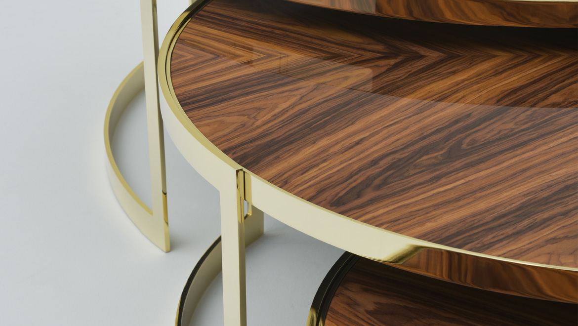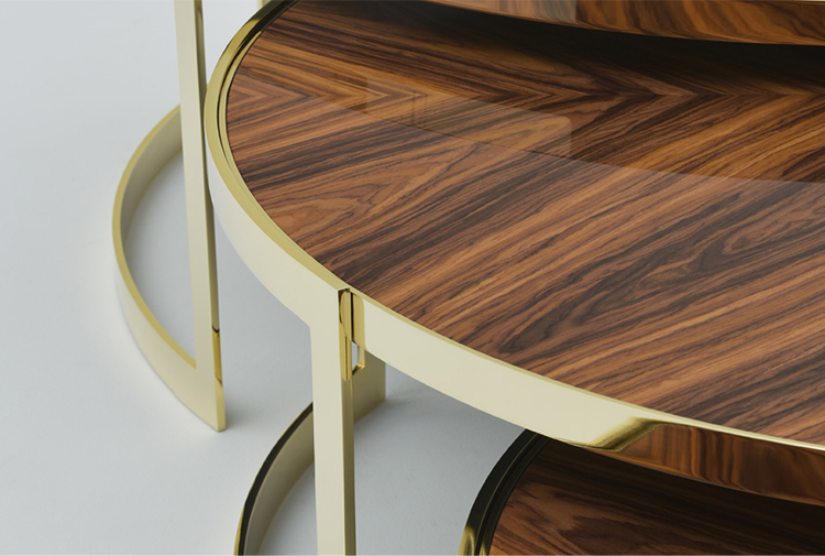 Anya是用橄榄绿或茶色玻璃制成的新顶部的茶几,与黄铜的结构形成对比。一种最小的装饰元素,使顶部的磨削能带来无可挑剔的工艺。