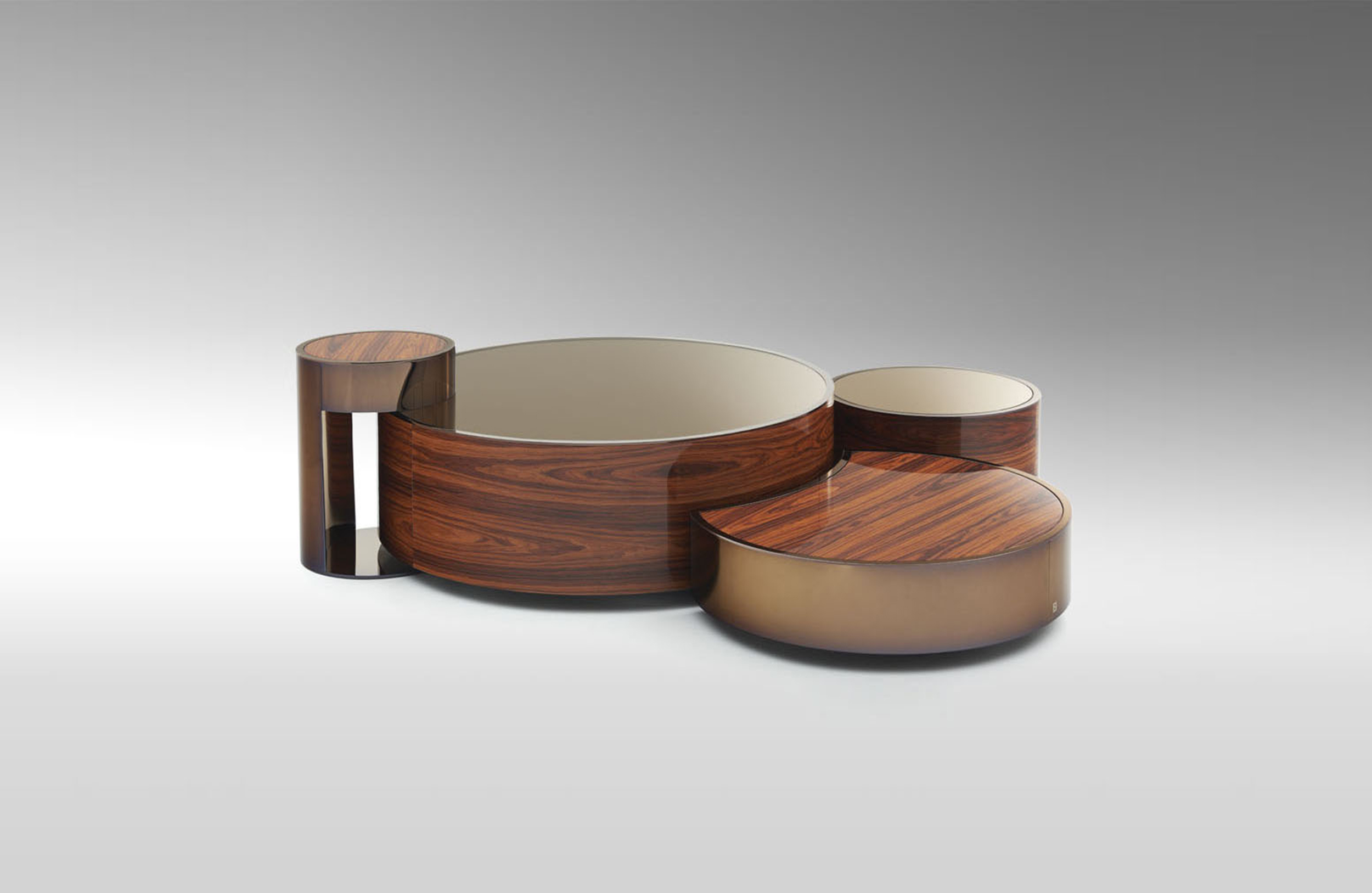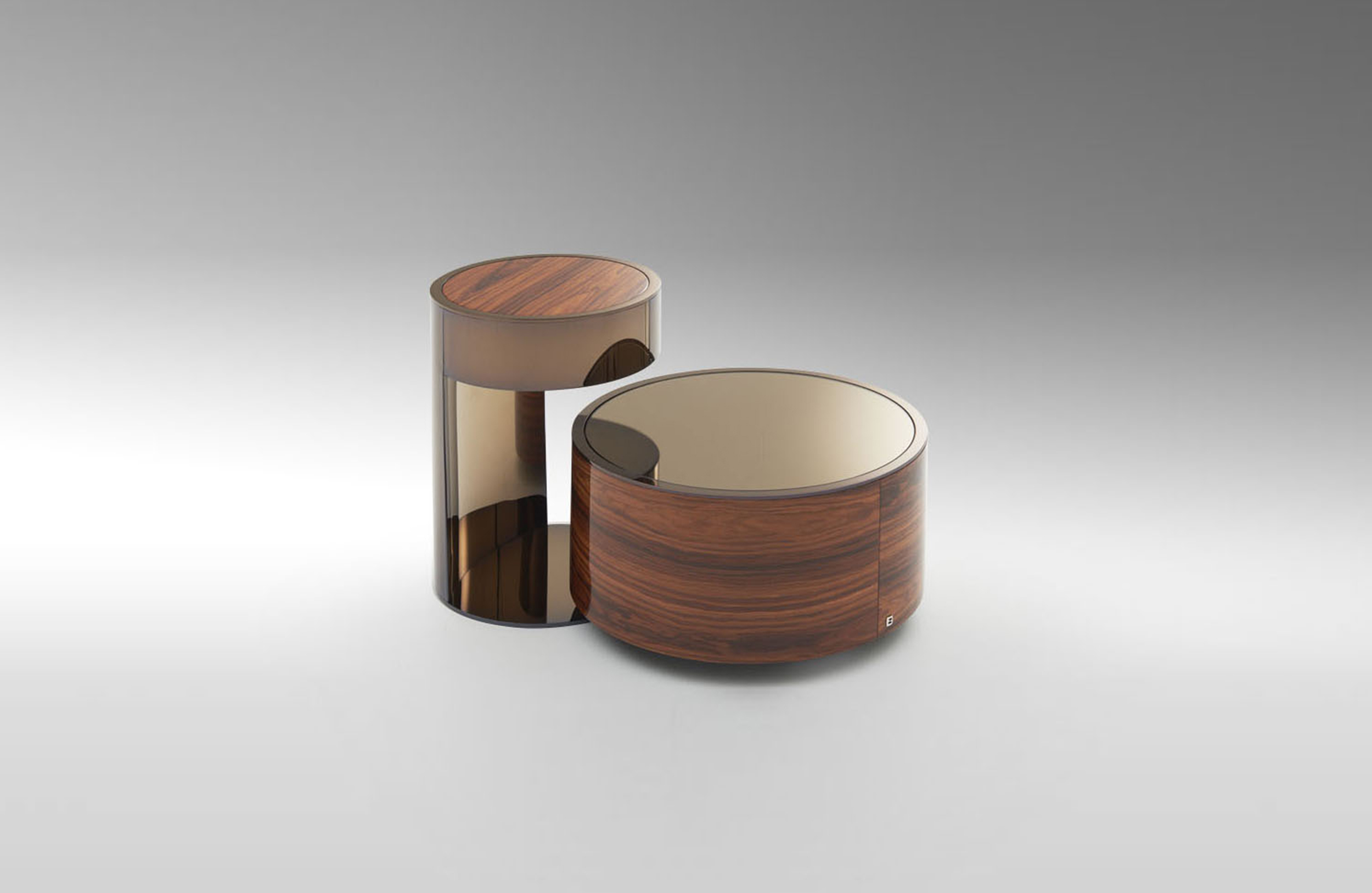 TOP Wood covered with extra clear mirror, smoke grey or bronze coordinated