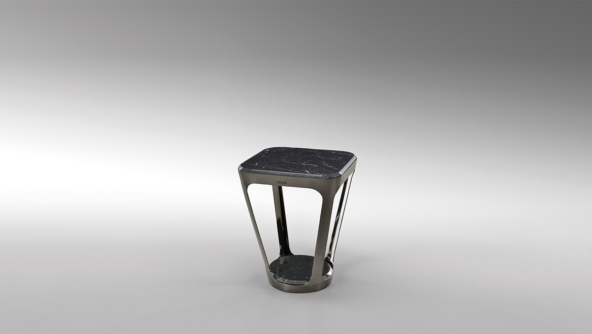 皮埃尔咖啡和侧桌的特点是整体的顶部和框架在减少的厚度。它们有一个外部金属“皮肤”,有大的开放表面和深灰色的表面。这种轻盈,加上稳定性,在表面上很明显,似乎漂浮着,有复杂的地面细节,都是缎质玻璃和珍贵的大理石。