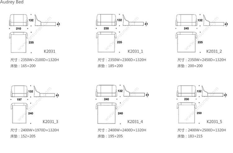 Audrey Bed 系列尺寸/示意图