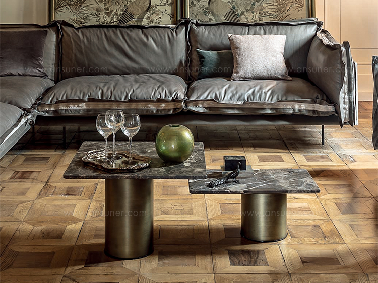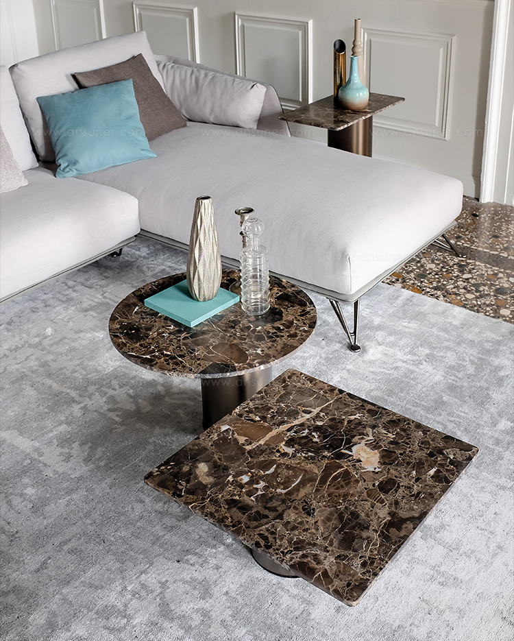 两种不同的材料结合在一个咖啡桌上。Petra咖啡桌被设计为可以当成单独的桌子或作为一套桌子进行使用。底座的设计是偏离桌面中心的,多款桌子因不同的高度搭配在一起创造了一个起伏的桌面效果。桌面有圆形和矩形可供用户进行选择。