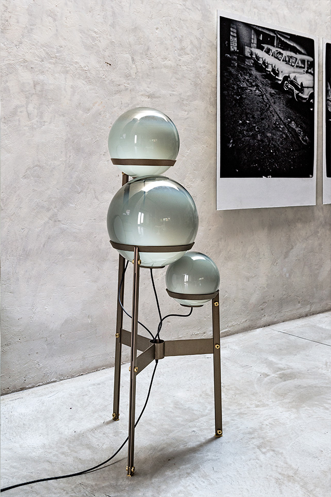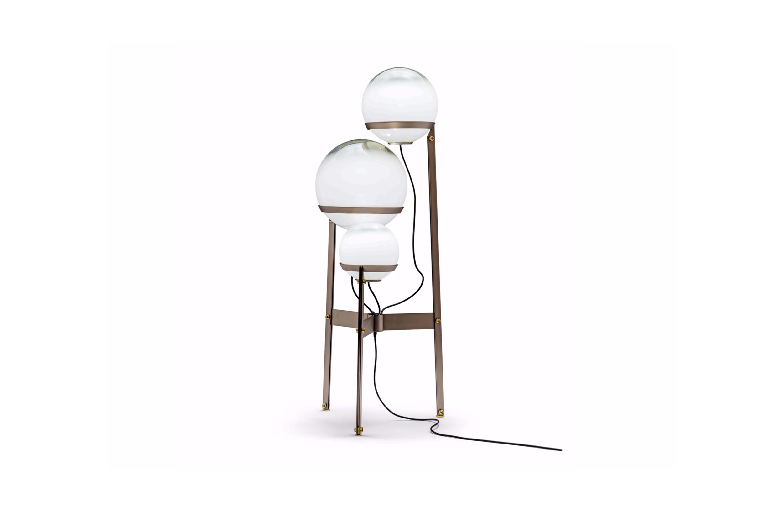 创意和吸引力是泡泡龙的特征。 泡泡龙可用作落地灯或悬吊灯,反映了泡泡龙的轻盈。其三个不同深浅和尺寸的玻璃球体由薄金属条带支撑。设计灵感来自同名游戏泡泡龙。