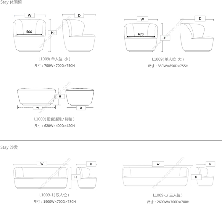 Stay 休闲椅 系列尺寸/示意图