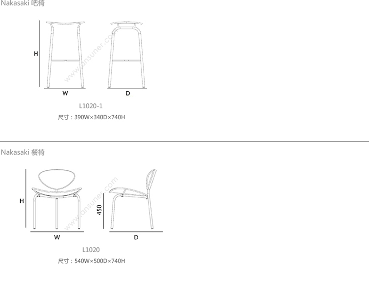 Nagasaki 吧椅 系列尺寸/示意图