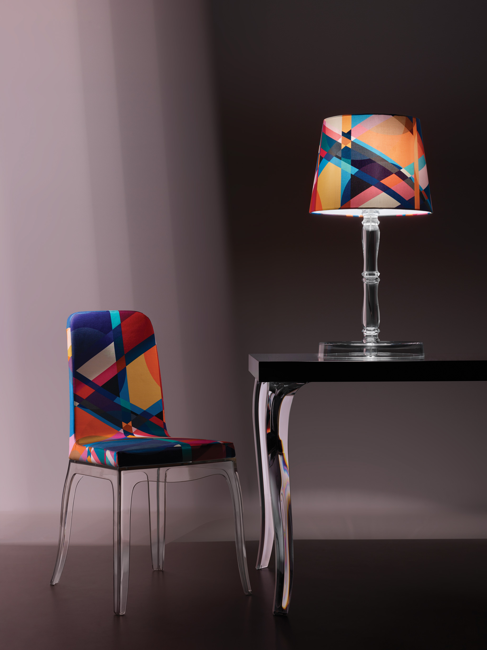 结合设计师Marcel Wanders和Stefano Giovannoni的才能,新系列产生于他们看似不可避免的合作。两者都喜欢用自己在商业和艺术上都珍视的标志性作品来建立自己。 B.B.系列包括一张餐桌和配套的餐椅,让人联想到Wanders的New Antiques系列。提花织物装饰在餐椅上,可选择黑色,白色和彩色图案。座椅放置在透明或黑色透明塑料底座上,注塑成型用于弯曲外观。这种款式的腿也体现在餐桌上,中密度纤维板的顶部,并有各种其他尺寸。这套装置可灵活调整,以适应许多室内设计。经典原型的重量与薄而透明的塑料的轻盈形成鲜明对比。设计最精美,表达了设计师的愿望,即培养他们创造的物体和环境以及将生活在其中的人之间的关系。