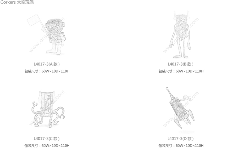 Corkers 太空玩偶 系列尺寸/示意图