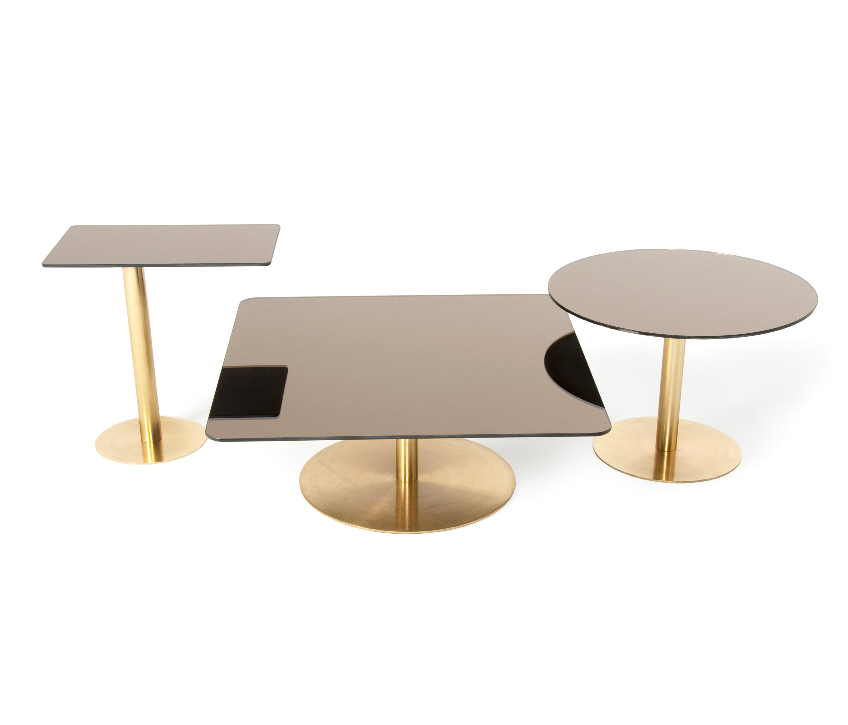 Flash桌可在三个高度和形状,作为理想的咖啡桌或茶几。矩形的版本可以悬臂在低矮的沙发扶手上。