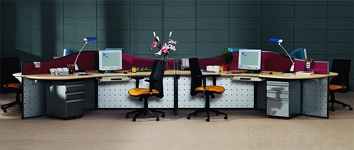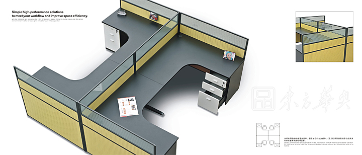 ※   上款屏风为120度转角工作位子,弹性的多角度连结,活泼沟通办公空间,优雅创造各种角度,灵活整合空间运用。