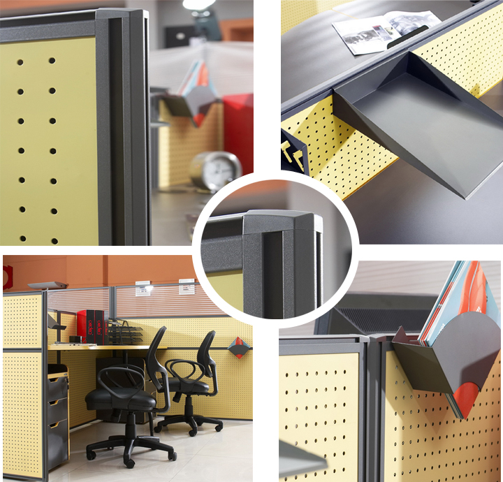※  多角度,多细节展示,屏风的厚实,外面是铝塑板组合。强调个人化,显示专业人员的地位,同时强化个人的独立和多功能用途之工作站。