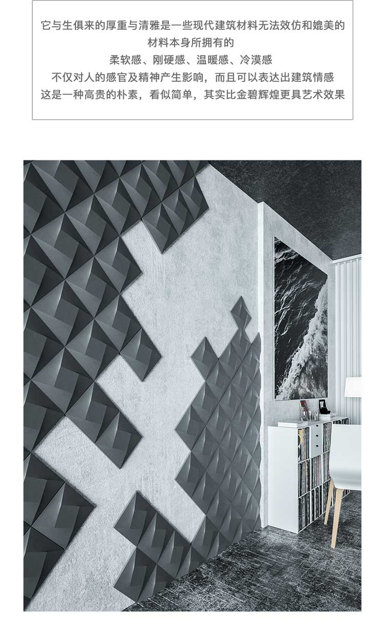 它与生俱来的厚重与清雅是一些现代建筑材料无法效仿和媲美的材料本身所拥有的柔软感、刚硬感、温暖感、冷漠感不仅对人的感官及精神产生影晌,而且可以表达出建筑情感这是一种高贵的朴素,看似简单,其实比金碧辉煌更具艺术效果。