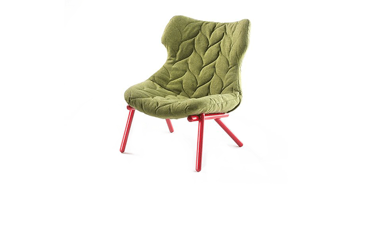 在西班牙鬼才设计师Patricia Urquiola的工作与美学中,大自然与人造是不变的主题,树叶沙发系列很好的表现了她的价值观,柔软的座椅,树叶造型,体现着生态与环保,尤其适合家庭使用。这套家具有单座或者双座,造型非常自然生态︰ 图漆金属框架,舒适的座位,树叶造型缝线,时刻让人联想到一棵枝繁叶茂树。椅面才有舒适的布料或者纤维织物和羊毛混纺,椅脚为环氧树脂喷漆铁管。通过活泼的色彩革新的材料,精湛的缝纫工艺完成了一把具有很高潜在表现力的椅子。