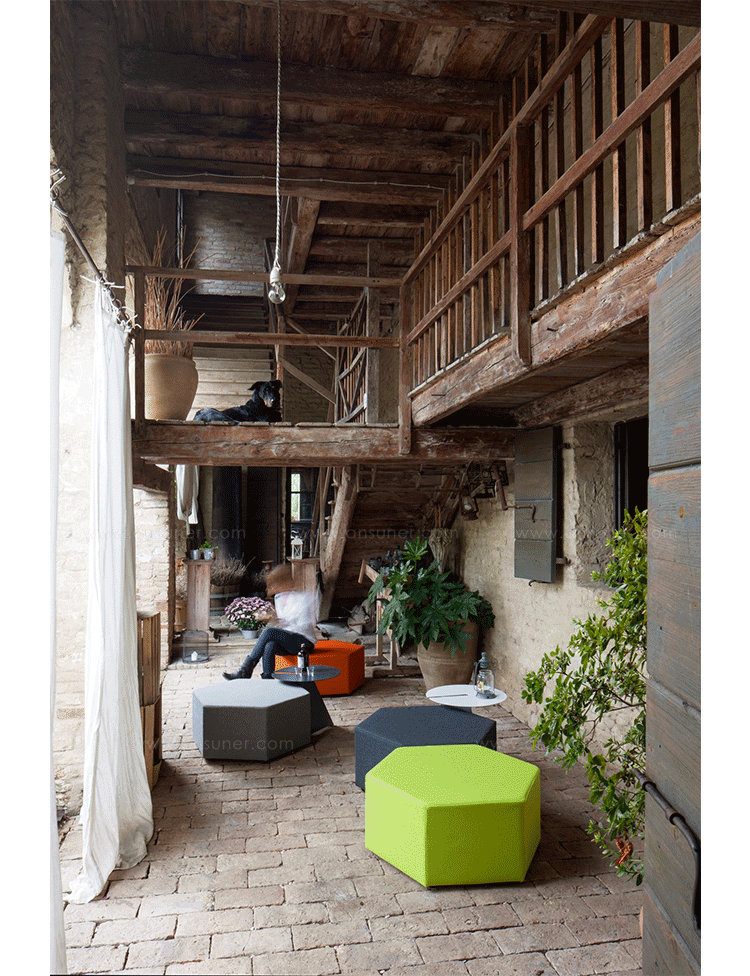 ESA Pouf(ESA墩)是日本设计师Kazuhide Takahama设计的,高浜和秀(Kazuhide Takahama)1930年出生在日本宫崎县,1953年毕业于东京工业大学的建筑系,之后几年便到意大利发展,在他的作品中就能够看到日本与西方文化相结合的特点。ESA Pouf(ESA)是一六角形坐垫(凳),极富个性,并且能根据您的想象力和创造力随意组合。制作采用进口玻璃钢内胆一次成型、高密度海绵、进口布艺或皮革(颜色可选)。