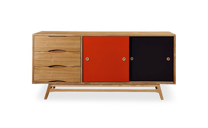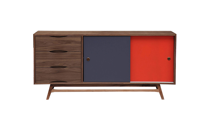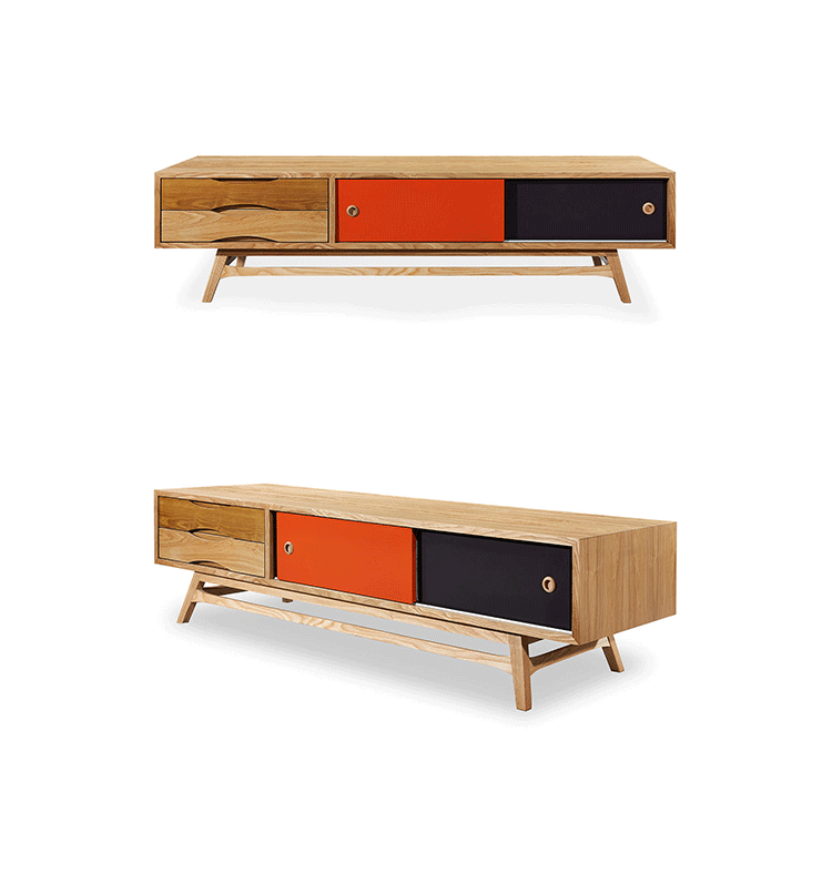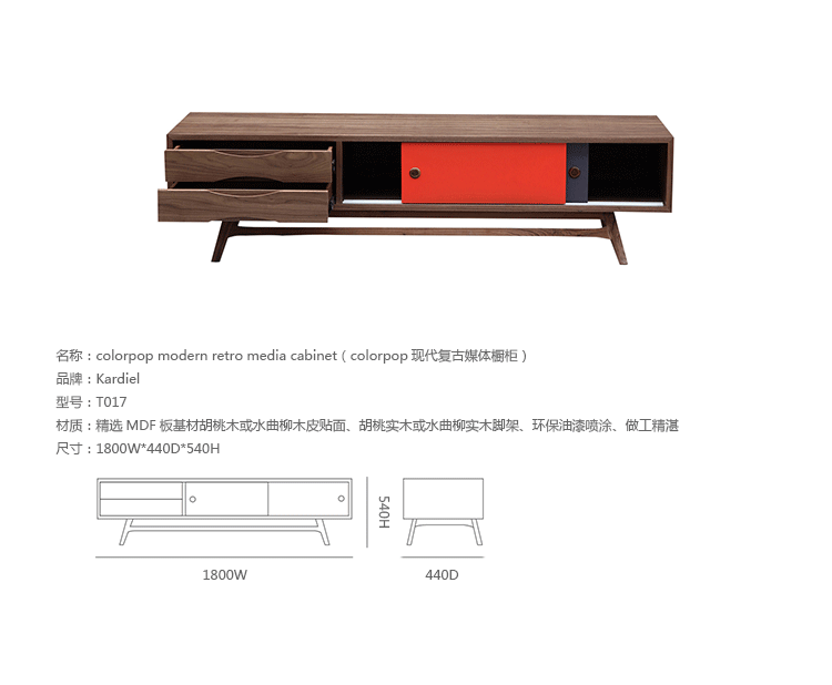 colorpop modern retro credenza(colorpop现代复古书柜)是Kardiel公司制作的经典实木家具。复古但永不过时的木炭是和橙色,结合美国核桃开创了20中世纪六十年代中现代主义的时代。在现代主义的存储家具上, Finn Juhl和 Arne Vodder 最先尝试胶木和天然木的组合运用。这是大胆的创新,他们结合传统的新鲜的新兴技术与现代主义的概念。他们通过这些色彩绚烂的产品所实现的是令人印象深刻的比例的平衡。流行的橙色和木炭色在现代主义风格上所达到的是受人尊的崇永恒。制作采用精选MDF板基材胡桃木或水曲柳木皮贴面、胡桃实木或水曲柳实木脚架、环保油漆喷涂、做工精湛。