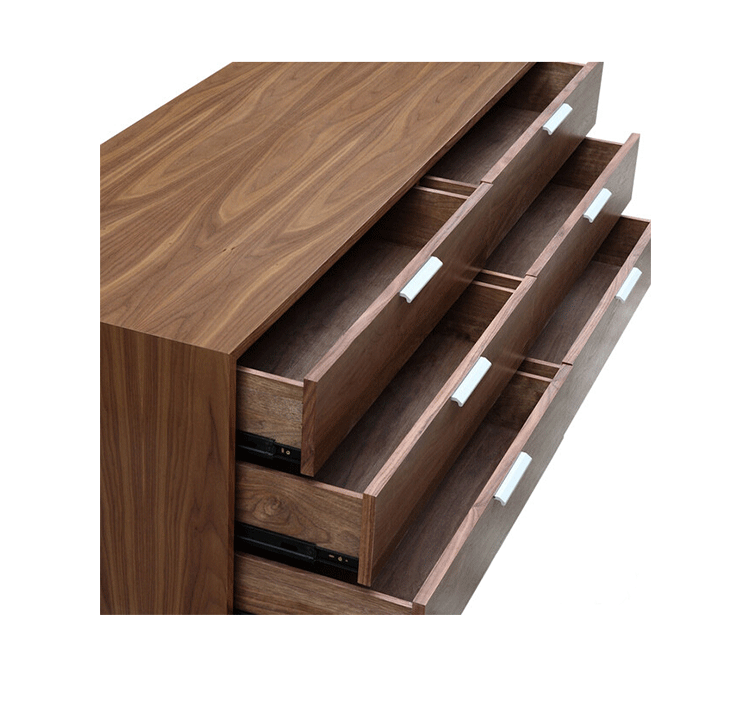 florence retro dresser(佛罗伦萨复古梳妆台)是Kardiel公司制作的经典实木家具,具有世纪中期的现代风格,复古的形式满足现代的审美,简洁干净的线条,功能齐全,有6个滑动式抽屉,提供充足的存储空间。制作精良,灰木单板材质经过仔细完成和抛光到丰富的自然光泽。制作采用精选MDF板基材胡桃木或水曲柳木皮贴面、胡桃实木或水曲柳实木脚架、环保油漆喷涂、做工精湛。