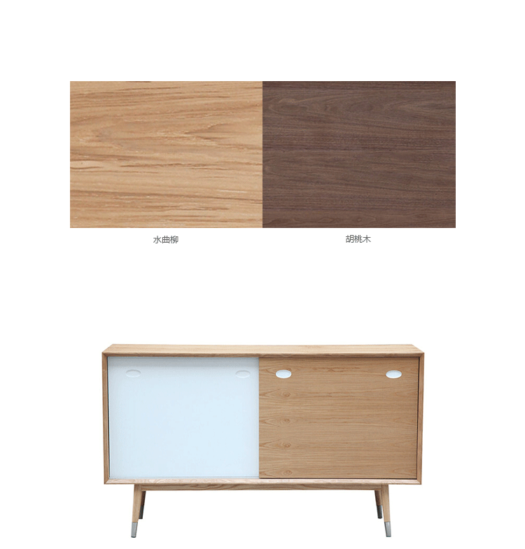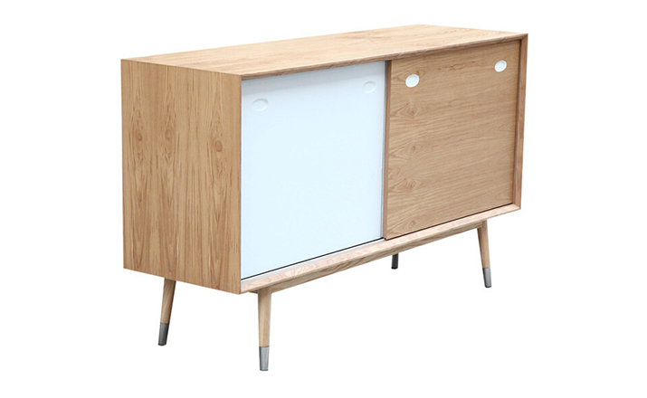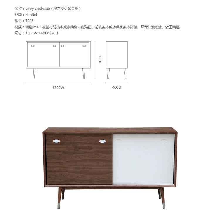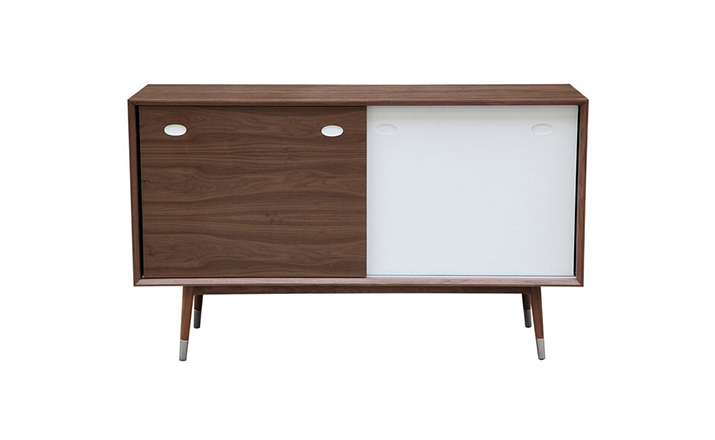 elroy credenza(埃尔罗伊餐具柜)是Kardiel公司制作的经典实木家具,干净、洁白,结合自然灰木色,六十年代中现代主义特色,设计本身也混合着设计师Soren Nissen & Ebbe Gehl的自然原始的现代风格。制作采用精选MDF板基材胡桃木或水曲柳木皮贴面、胡桃实木或水曲柳实木脚架、环保油漆喷涂、做工精湛。