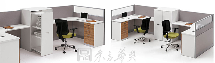 ※  工作站中加装较高的桌上屏风,来创造工作团队中也有属于自己的区域。用高屏风来区隔本工作团队和别人。