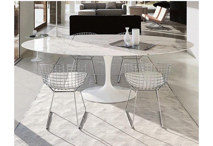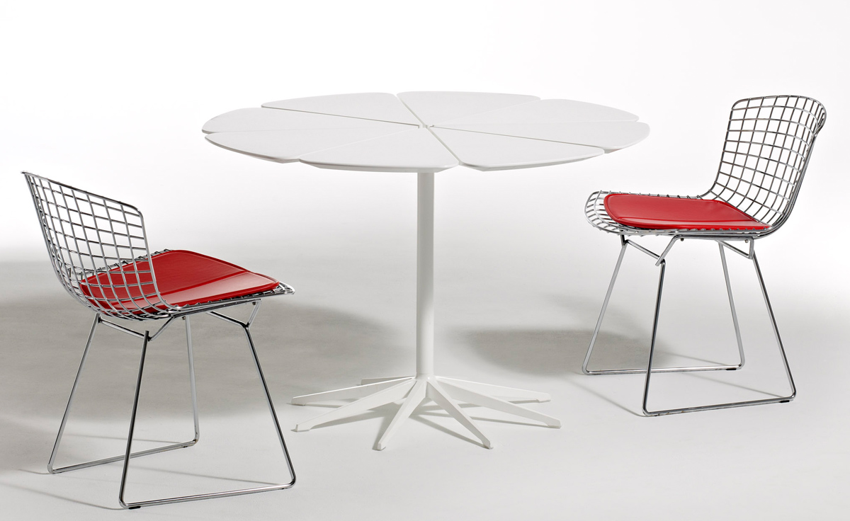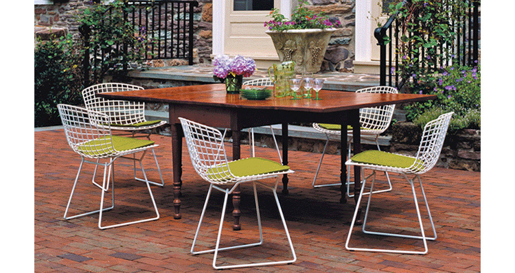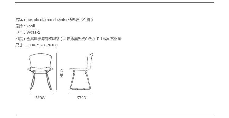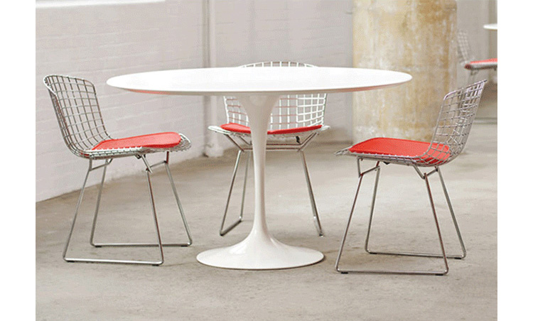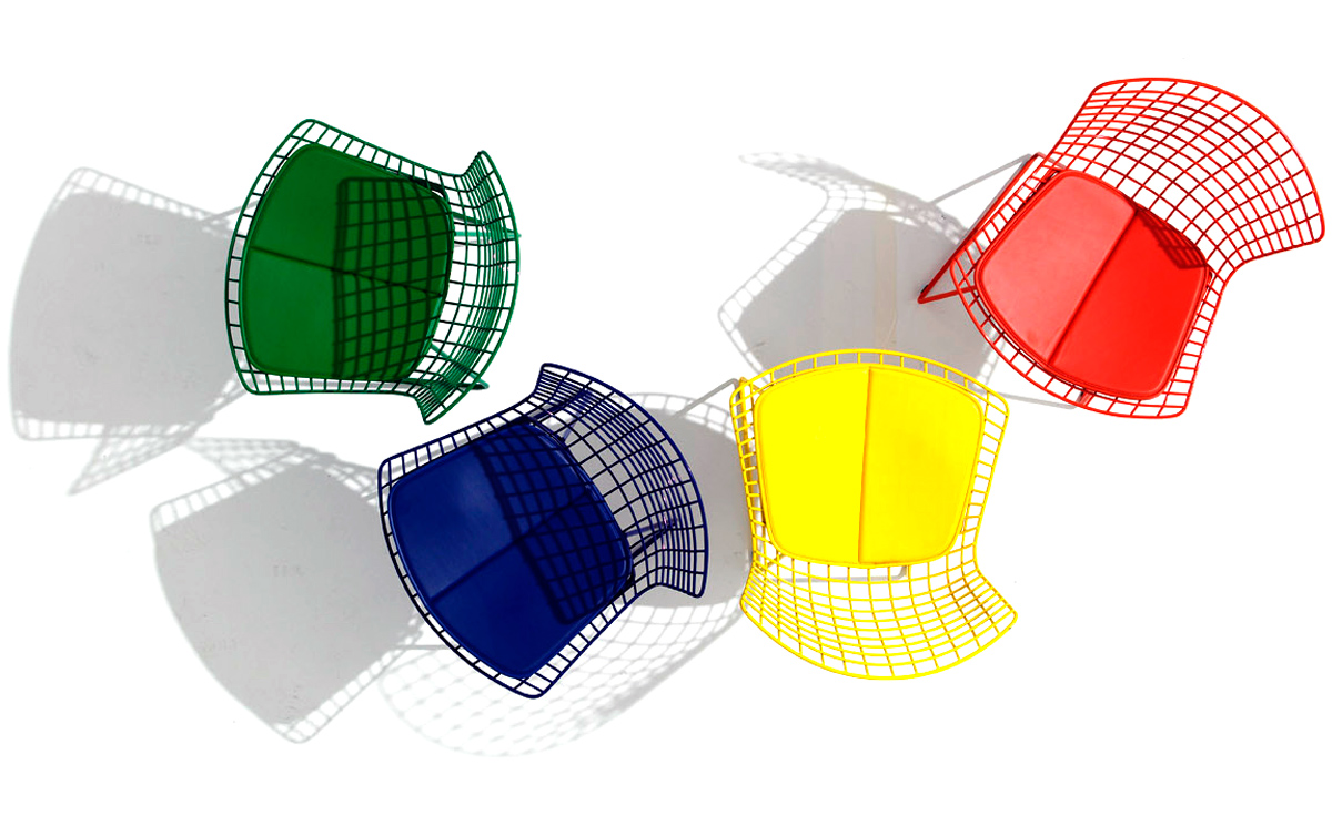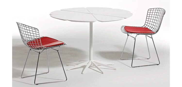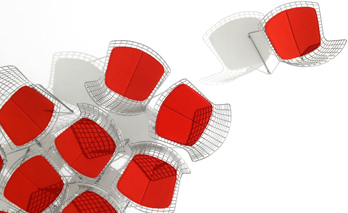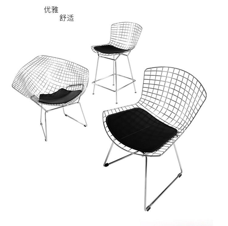 Bertoia Chair 是 Harry Bertoia 延伸其珠寶設計與金屬製作概念的一件兼顧實用與藝術的作品,精緻的外觀下,卻不失椅子功能上的舒適及耐用性