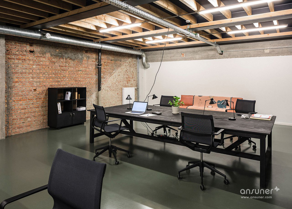 这处面积约3,000平方米的联合办公空间,位于安特卫普瓦特大厦(WATT Tower)的一楼。(瓦特大厦建于1958年,由现代主义建筑师Leon Stynen设计。)Going East设计团队将动感高架的理念用于空间的设计中,以错落有致的新建夹层打造一个上下流动充满惊喜的办公空间,打破了方正空间的单一和无趣。