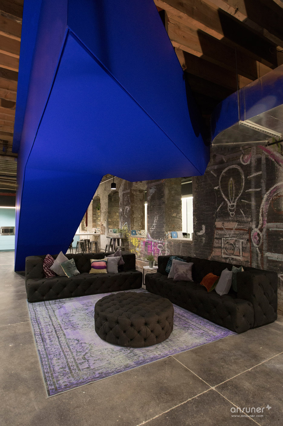 这处面积约4330平方米的联合办公场地,位于布鲁克林区的郭瓦纳斯(Gowanus),一个成熟的工业区。近年来对城市基础设施的改造与建设让这里恢复了社区活力,涌现出大量艺术家的工作室、潮流餐厅和公寓大楼。沿着郭瓦纳斯运河,随处可见临时搭建的艺术画廊和另类音乐场所。