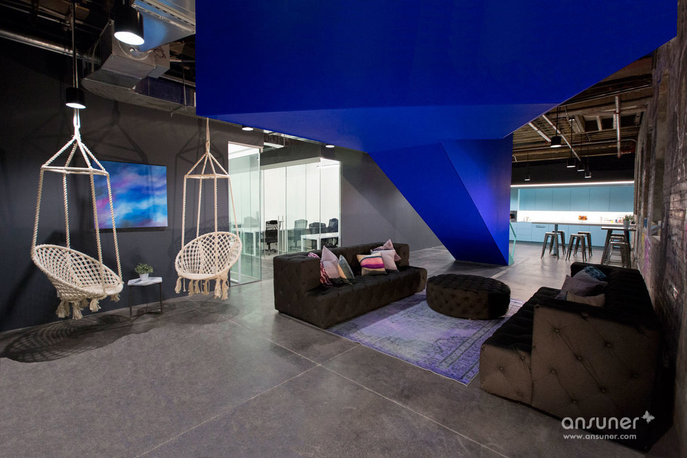 为了创造视觉上的连续性,设计团队在整个建筑空间中创建了一个Z字形的构造,明亮的色彩巧妙串连起连接各楼层的楼梯,时尚办公网认为这是本案最精彩的亮点。