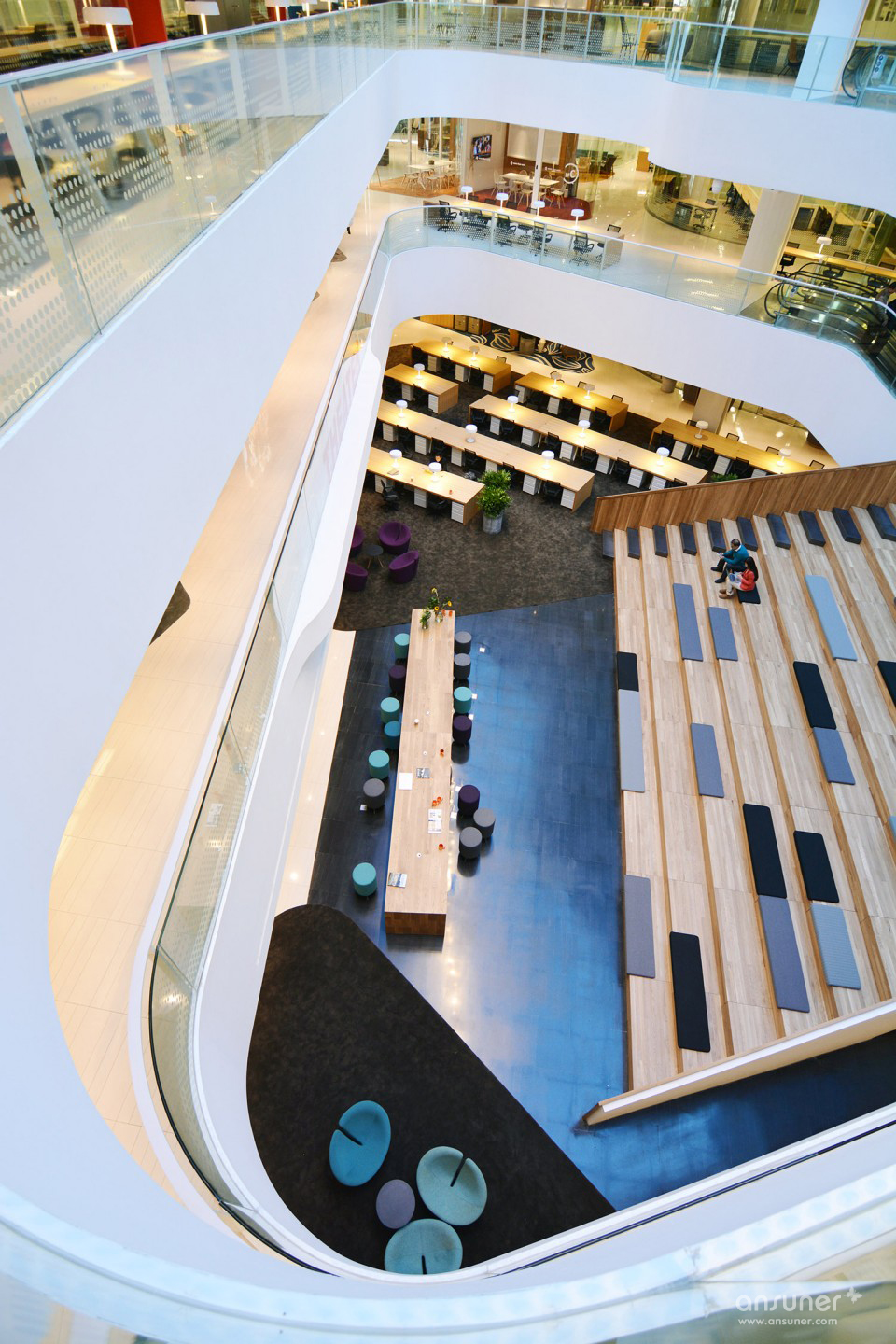 设计师决定善用购物中心的空间, 将商场过道巧妙的布局为work station lab,把原有的商铺空间改建为让租客悠闲relax的café和开放式茶水间,舒缓紧张的工作节奏。此外,如何改装两个宏大明亮的中庭,让它们作为整个3Q的核心焦点,无限发挥3Q鼓励networking的凝聚力?